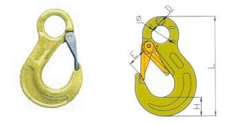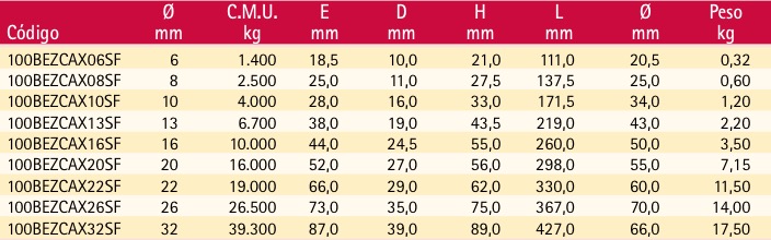 Diseño: Gancho tipo BAX con lengüeta de seguridad para conexión directa a cadena.